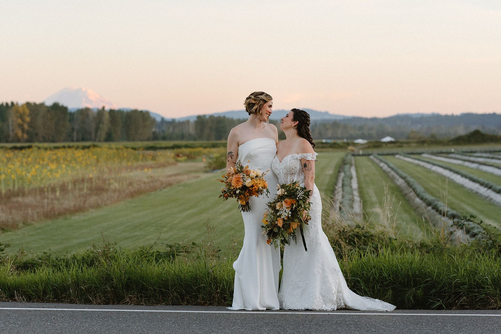 Wedding Planning & Event Design: Aisle Less Traveled • Wedding Venue & Catering: Willows Lodge • Photographer & Videographer: Miranda Florer • DJ: Puget Sounds – DJ Kelli • Florals: Flora D’Amore • Lighting: Glow Lighting • Hair & Makeup: Blush Strokes Beauty • Gelato Cart: Nutty Squirrel • Officiant: Pastor Ellie • National Park Welcome Sign: Timber and Stain • National Park Table Signs: Victor Wood Forge • Steph’s Wedding Dress: Anthropologie • Lauren’s Wedding Dress: Maggie Sottero from I Do Bridal • Steph’s Shoes: Nordstrom Rack • Lauren’s Shoes: Aldo • Hotel Blocks: JC Room Blocks